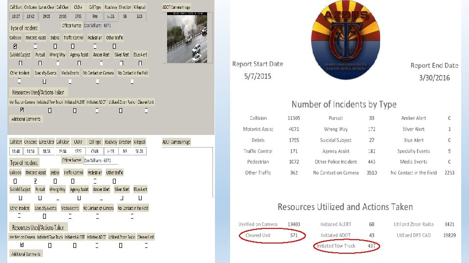 TIM Data Collection Ø Traffic and Criminal Software (Tra. CS) § Public Safety Data Collection Software § Used by Troopers to Electronically Document Collision Reports, Enforcement Actions, Vehicle Tows, Supplemental Forms, Etc. § Downloaded Daily to Arizona Department of Transportation in XML File Format § Captures TIM Performance Measures