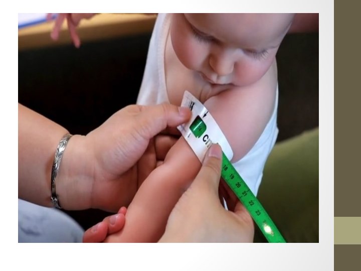 Aim To correctly measure, interpret and monitor the arm circumference of infants and young children. Equipment Clean flexible, non-stretchable measuring tape or disposable paper tape. The tape should have increments of 0. 1 cm and a width of 0. 5 – 1. 0 cm. Check tape against a static measure for accuracy, and replace regularly as required.