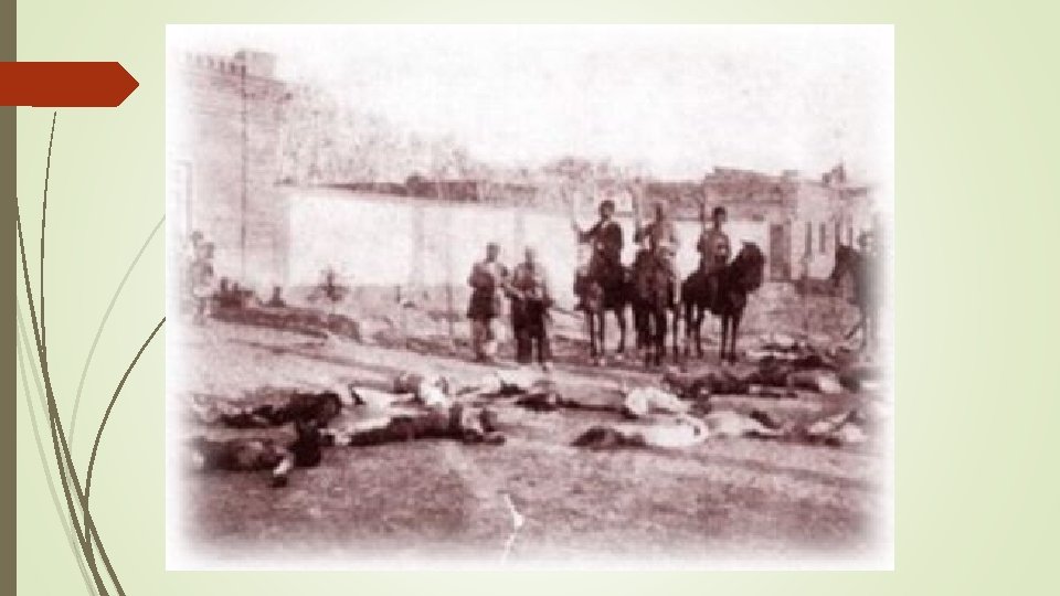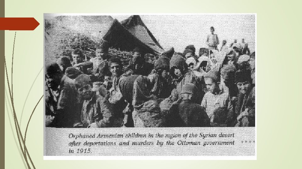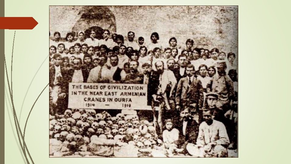 The Genocide Begins In 1914, Turkey entered WWI against Russia = a military disaster Turkey accused the Armenians of aiding Russia. On April 24, 1915 -Turkish authorities arrested and executed Armenian leaders in Constantinople. This date would be forever remembered as the beginning of the Armenian genocide. https: //www. youtube. com/watch? v=7 z 9 Ce. LBi 64 Q BBC clip 5: 44 https: //www. youtube. com/watch? v=g. E-XI 6 bl. XB 0 A Story of Armenian Genocide https: //www. youtube. com/watch? v=Xq 9 Fg. RQc. JXQ Women survivor English 5: 26 https: //www. youtube. com/watch? v=b. AAq 1 z. SXCug Survivors speaking 100 th Ann 8: 30 https: //www. youtube. com/watch? v=BSchiq. WIB 6 g Alt His 3; 88