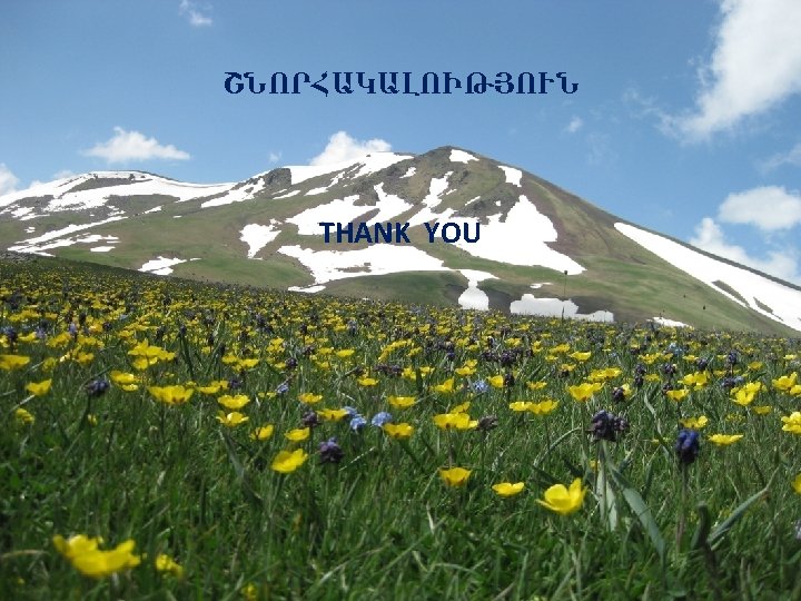 Climate of Armenia Annual mean air temperature over Armenia 5, 50 C; Summer average air temperature varies from 100 C in high mountainous regions to +24…+260 C in lowlands. January average air temperature depending on the altitude and peculiarity of the relief fluctuates from – 130 C to +10 C. The absolute maximum +43. 70 C(2011) The absolute minimum temperatures -420 C(1972) • The annual precipitation amount 592 In Lowland areas 250 -300 mm, in submountainous areas 300 -500 mm, mountainous areas 500 -800 mm