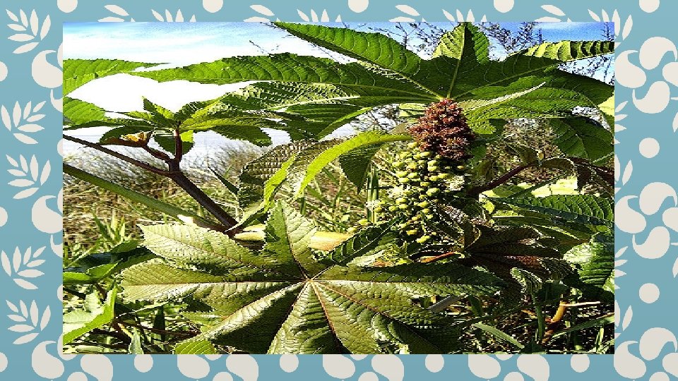 ÓLEO DE RÍCINO Óleo extraído da mamona. Muito conhecida por crianças que adoravam brincar com guerrinhas de mamona. Antigamente as brincadeiras eram mais ao ar livre. Usada como adstringente. Em doses altas causa náuseas, vômitos, cólicas e diarreia aguda. Usado em misturas para induzir partos. Usado para fabricar cosméticos , ceras e plásticos. Sedativo.