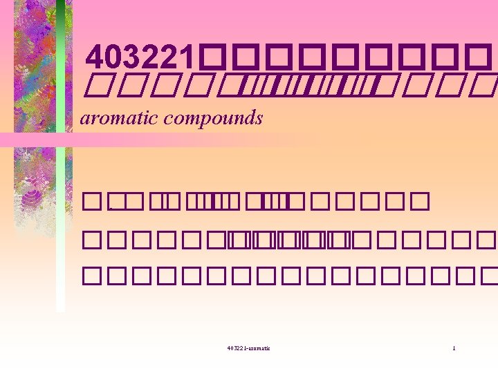 ������ aromatic • ��������� 1. ����� oxidation 2. ����� Halogenation 403221 -aromatic 32