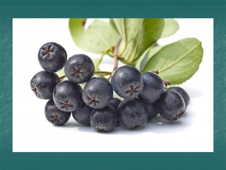 What is Aronia? n Perennial North American native berry bush n n Also known as chokeberry and also an ornamental Aronia melanocarpa, also Photinia melanocarpa n n Aronia arbutifolia, also Photinia melanocarpa n n small reddish pomaceous berry Aronia prunifolia, also Photinia floribunda n n Small black pomaceous berry Natural hybrid, w/small dark purple pomaceous berry Aronia mitschurinii, also Sorbaronia mitschurinii n Natural hybrid, w/small dark purple pomaceous berry