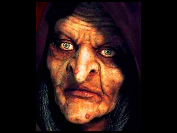 KAKO PREPOZNATI ČAROVNICO Prava čarovnica vedno nosi rokavice, ima tanke zakrivljene kremplje namesto nohtov, je plešasta, zato nosi lasuljo, ima večje nosnice kakor navadni ljudje, da lahko v temi zavoha otroke, črna pika v očesu spreminja barvo; v središču barvite zenice ji plešeta ogenj in led, je demon v človeški obliki, nima nohtov na nogi, njena slina je modre barve.