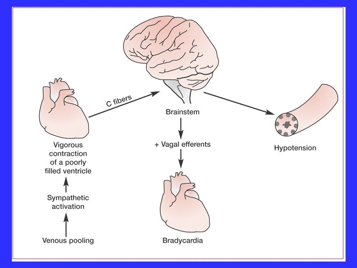 Mekanizma: Vazovagal senkop Uzun süreli ayakta durma Alt ekstremitede 500 -700 ml venöz kan göllenmesi Venöz dönüşün azalması Kalp debisi ve kan basıncında düşme Arteriyel* ve kardiyopulmoner baroreseptörlerin aktivasyonu