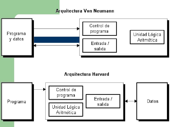Las características de una arquitectura RISC. l l siguen tomando el esquema de Von Neumann. Las instrucciones, aunque con otras características, siguen divididas en tres grupos: