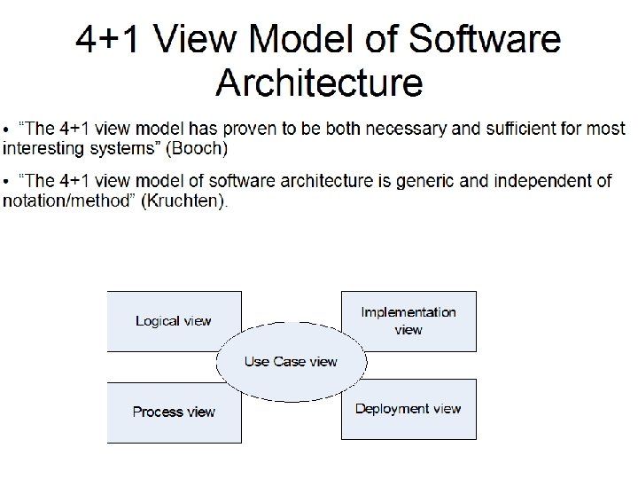 Quantas visões? • Nem todo software precisa de todas as 5 visões do 4+1 • Nem todo software precisa de várias visões • Ex. – Um único processador → não precisa da visão de deployment – Um único processo → não precisa da visão de processos