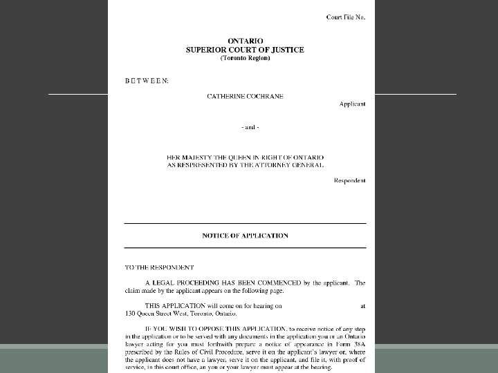 Supreme court judge claims Canadians lack access to justice Legal Aid § According to the Charter, all Canadian have the “right to retain and instruct counsel without delay” for criminal cases. § If the accused cannot afford a lawyer, he/she can apply for legal aid (legal services provided free of charge. Appointed lawyers are paid for by tax dollars). § The accused should get an estimate of the cost of legal fees prior to trial. Legal Aid is available for those who qualify. § Duty counsel (court lawyer) assists an accused person who does not have legal representation when he/she first appears in court. Today, most legal aid must be paid back.