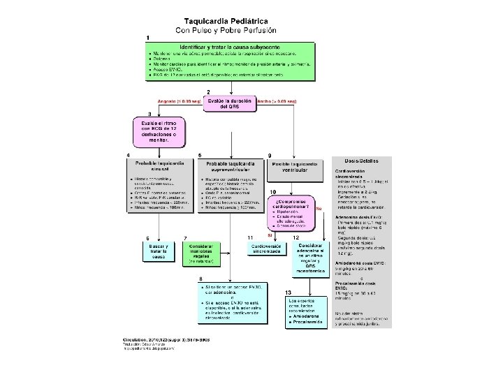 TAQUICARDIA VENTRICULAR POSTQUIRURGICA • Desde que las cardiopati as conge nitas pudieron ser sometidas a diferentes te cnicas quiru rgicas, la taquicardia ventricular se evidencio como una complicacio n de aparicio n tanto temprana como tardi a. Las cardiopati as conge nitas con ma s incidencia de TV post quiru rgica son las malformaciones cono troncales, siendo la ma s comu n de estas la Tetralogi a de Fallot. La incidencia de aparicio n de TV disminuyo con la modificacio n de la te cnica operatoria que realiza la reparacio n a trave s de la va lvula tricu spide y no mediante ventriculotomia derecha. • El mayor riesgo para estos pacientes esta asociado a la evolucio n de la hemodinamia de su ventri culo derecho. Tratamiento: ablacio n por radiofrecuencia segu n tolerancia hemodina mica, si no es posible Amiodarona , y de ser inefectiva cardiodesfibrilador implantable.