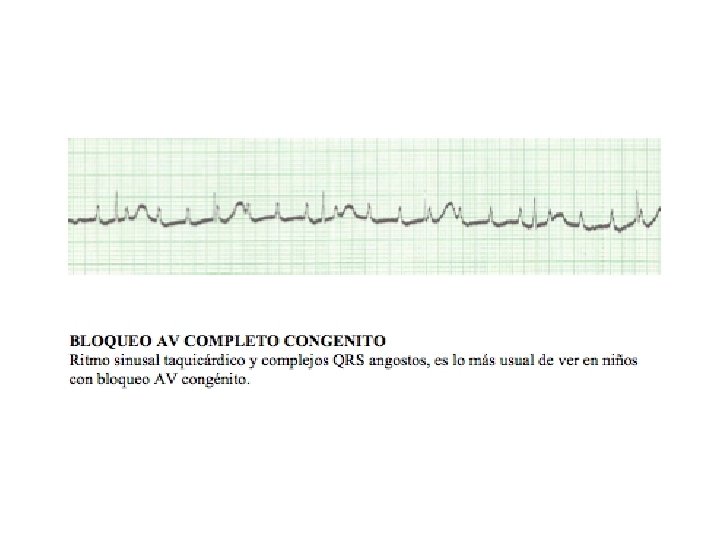 BLOQUEO AV COMMPLETO • Tipo 3 o bloqueo AV completo: es la interrupcio n total de la conduccio n en el nodo auri culo ventricular (AV), que se presenta en el ECG por la disociacio n A- V con frecuencias ventriculares menores a las auriculares. Esta patologi a se conoce desde principios del siglo XVIII (Gerbezius 1718). Morgangni en el an o 1791 describe a un paciente que presentaba mareos y lo relaciona con su pulso lento. Pero fue el me dico pediatra uruguayo Morquio quien por primera vez publico la presencia del bloqueo conge nito en un grupo de nin os de una misma familia. Posteriormente los estudios de M. Engle y M. Michalson en colaboracio n con centros internacionales han delineado los aspectos ba sicos sobre la presentacio n cli nica, historia natural, y enfoques terape uticos de esta enfermedad. Existen la forma conge nita y la adquirida.