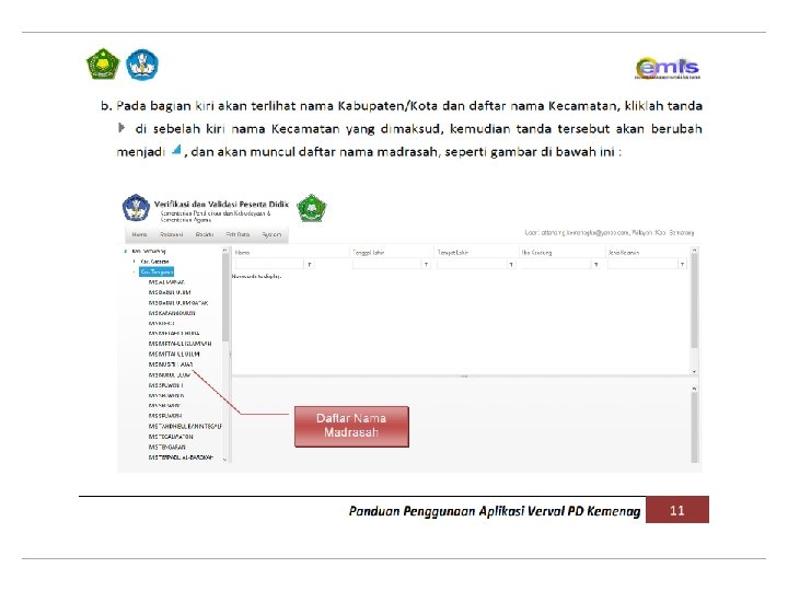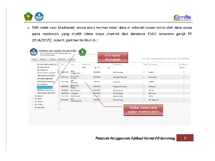 Update data 1 X 24 JAM EMIS KONFIRMASI DATA PROSES UPDATE DATA DARI APLIKASI VERVAL PD KE DAPODIK MEMERLUKAN WAKTU MAX. 1 X 24 JAM MENGKONFIRMASI DATA YANG TELAH DI VERIFIKASI – VALIDASI (VERVAL) SUPAYA DATA SISWA DAN NISN DI : REFERENSI VERVAL PD KEMENAG, KEMENAG EMIS, EMIS DAN ARSIP PDSP MENJADI VALID/SAMA PERSIS. Update data ARSIP PDSP