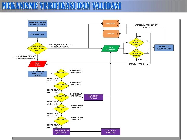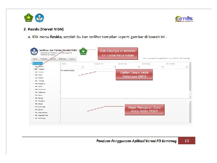 MENU UNTUK MEMPROSES ATAU MEMVERIFIKASI-VALIDASI DATA SISWA YANG BELUM VALID RESIDU DATA HASIL ENTRY EMIS DATA PEMBANDING DARI ARSIP PDSP Tombol untuk membuat (create) NISN baru Tombol untuk mengambil NISN dari Arsip PDSP yang dianggap sesuai Konsep Verval Residu MENGIDENTIFIKASI KEMIRIPAN NISN+NAMA+TEMPAT+TANGGAL LAHIR YANG DITAMPILKAN, ANTARA HASIL ENTRI DAPODIK VS database DATA ARSIP PDSP Tombol untuk. DATA melakukan pencarian data ke Arsip PDSP