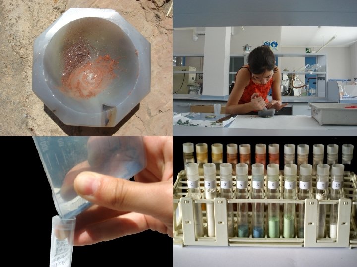 2) Pigment preparation OBTAINING THE PIGMENT -Separating impurities from the minerals - Grinding the minerals with an agate mortar - Storage of pigments in plastic tubes
