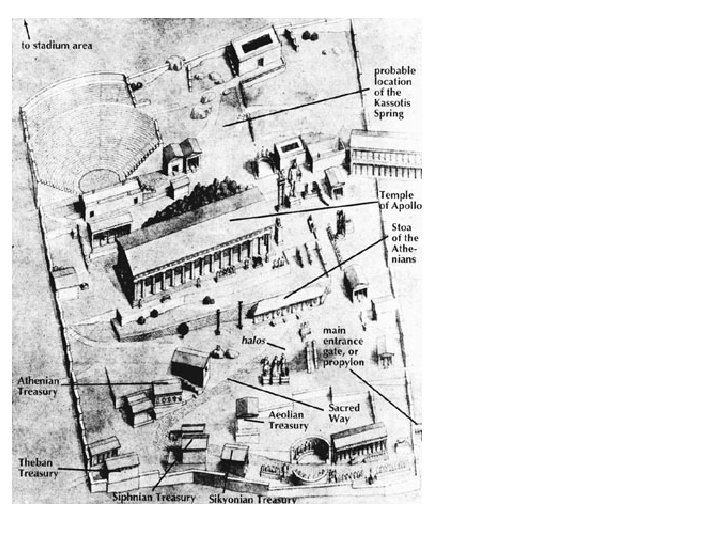Terms and Stuff city-state -- a polis • an autonomous region having a city as its political, cultural, religious, and economic center • for example: Athens, Sparta, Corinth a stoa –colonnaded pavilion, open on three sides stadium sanctuaries • Mount Olympos • Sanctuary of Apollo, Delphi (the oracle of Delphi)