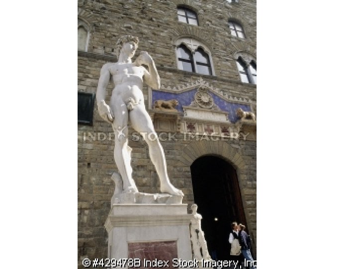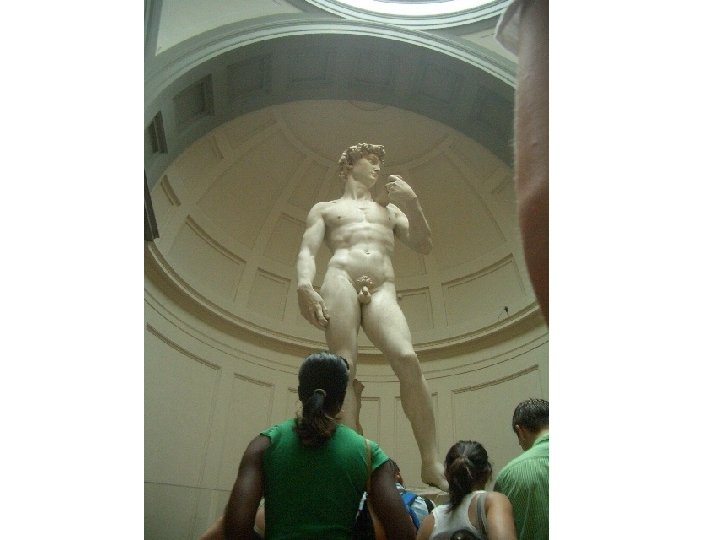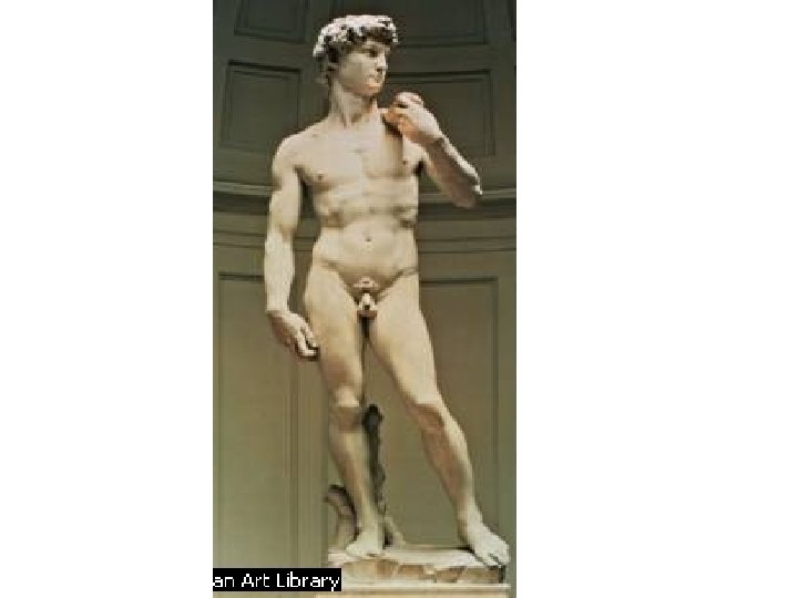 Artist: Michelangelo Art: The David Medium: Marble Sculpture 1. 2. 3. 4. 5. High-Renaissance (1500 s) HUGE (15 ft. tall) David looks like a strong man Is supposed to look mighty Symbolizes the strength of man