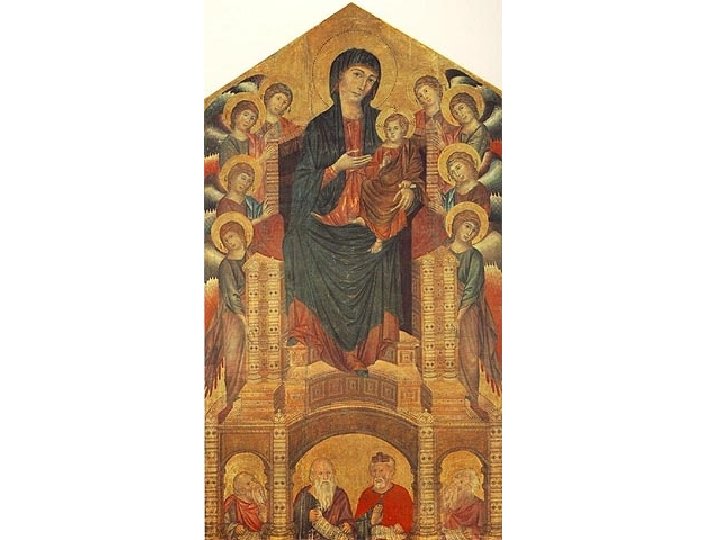 Artist: Cimabue Art: Madonna Medium: Egg Tempera 1. 2. 3. 4. 5. Typical of Medieval work (1300 s) Pre-Renaissance Flat Fake looking A lot of gold