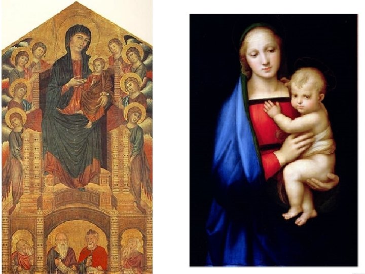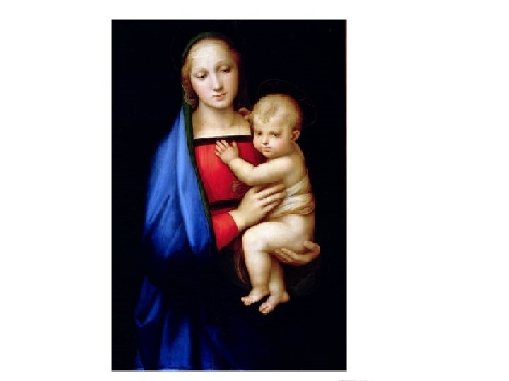 Artist: Raphael Art: Madonna Medium: Oil on wood 1. 2. 3. 4. 5. Typical Renaissance work (1500 s) High-Renaissance 3 -dimential look Looks very real Jesus looks like a baby, Mary looks like a loving mom