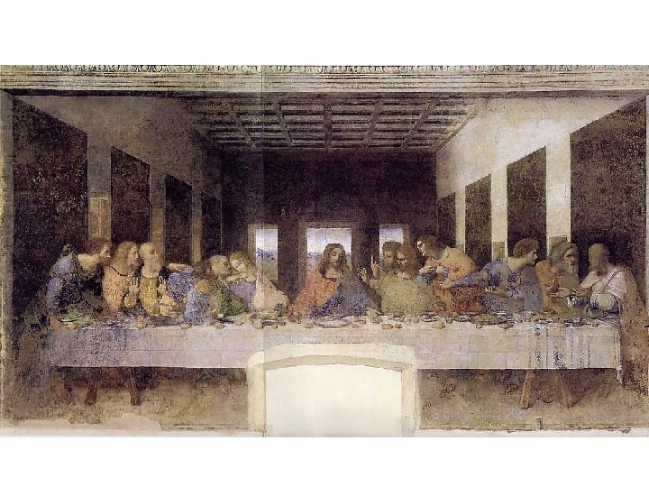 Artist: Leonardo Art: The Last Supper Medium: Fresco 1. High-Renaissance (1500 s) 2. Huge – painted onto a whole wall 3. Subject is the last supper of Jesus before his crucifixion 4. Has leading lines to draw your eyes to Jesus