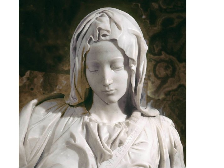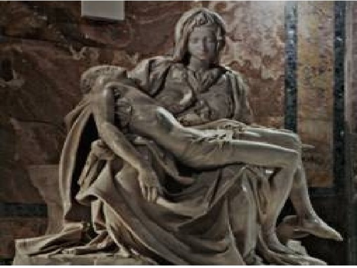 Artist: Michelangelo Art: Pieta Medium: Marble Sculpture 1. 2. 3. 4. High-Renaissance (1500 s) Life size Michelangelo's first work Was attacked – now behind glass