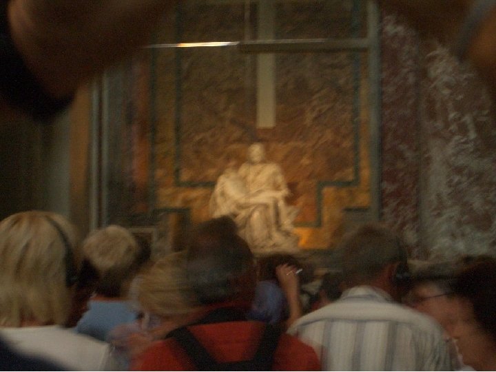 STATION #9 This is Michelangelo’s Pieta. It’s a sculpture made out of a single piece of marble, about life size. The word “pieta” refers to a work of art in which Mary is holding Jesus after he was crucified. Do not touch it, but describe what you see. Imagine this to be life size. What do you think Michelangelo wanted you to think of this moment in time?