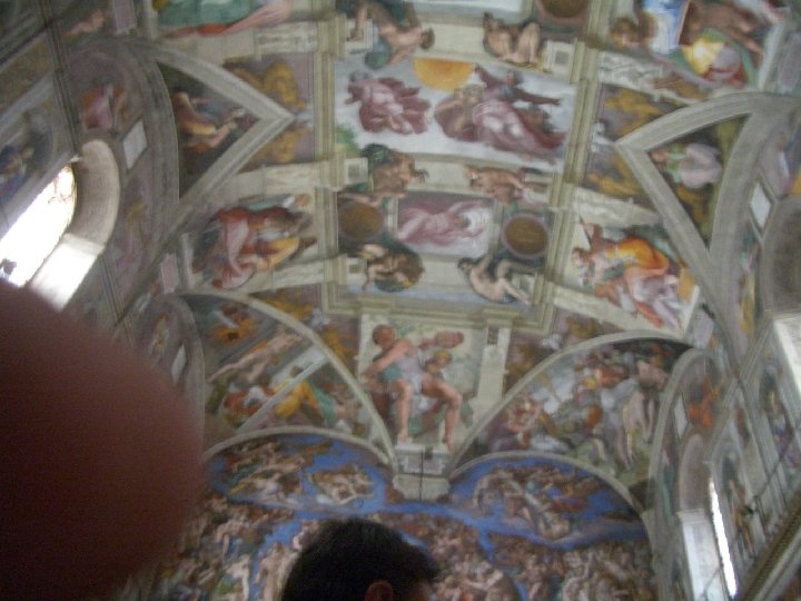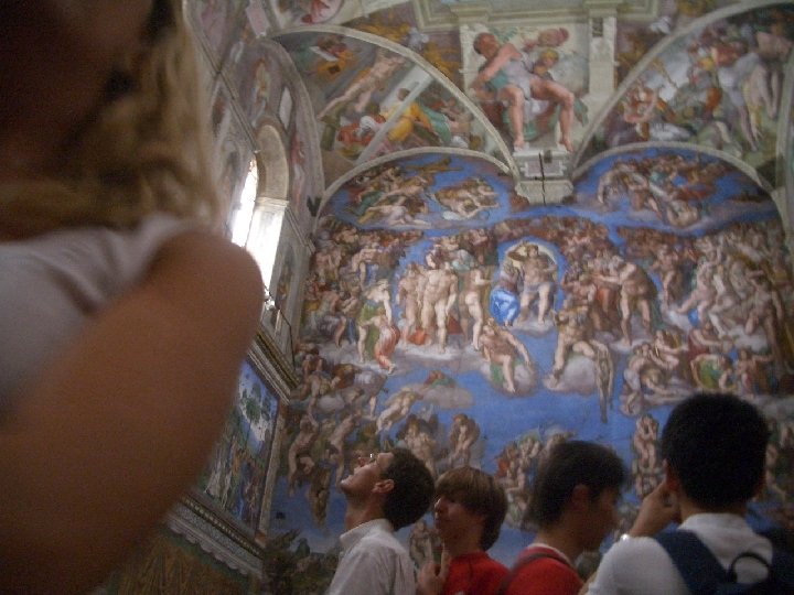 STATION #7 This is Michelangelo’s only painting. It’s on the ceiling of the Sistine Chapel, in Rome. Imagine looking up at it. In fact, pull the larger one off the file and hold it above your head. Describe what you see. Find the one panel that is represented in the other enlargement. It’s called the “Creation of Man. ” Adam is on the left. Who do you suppose is the “guy” on the right?