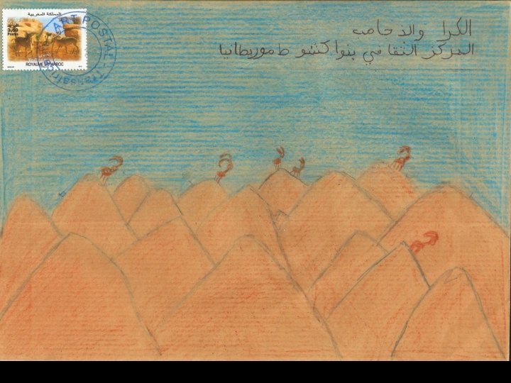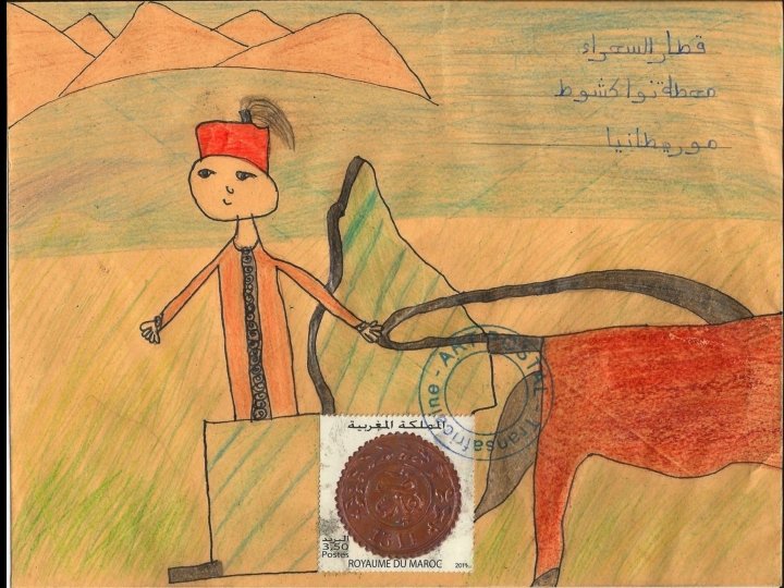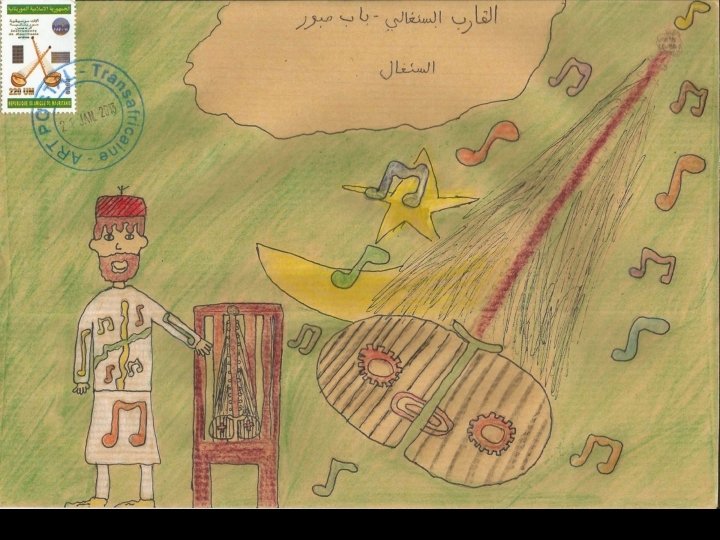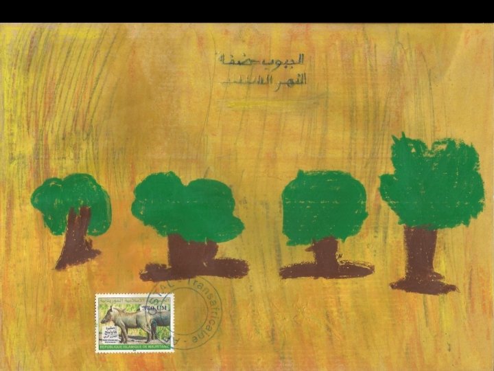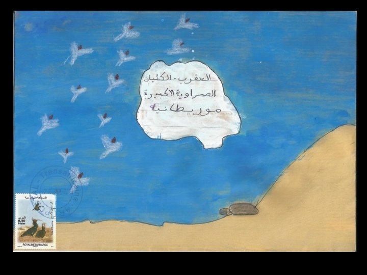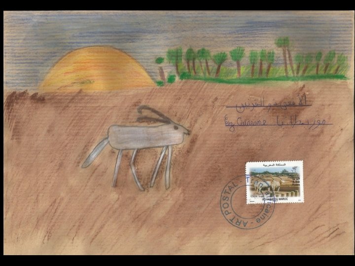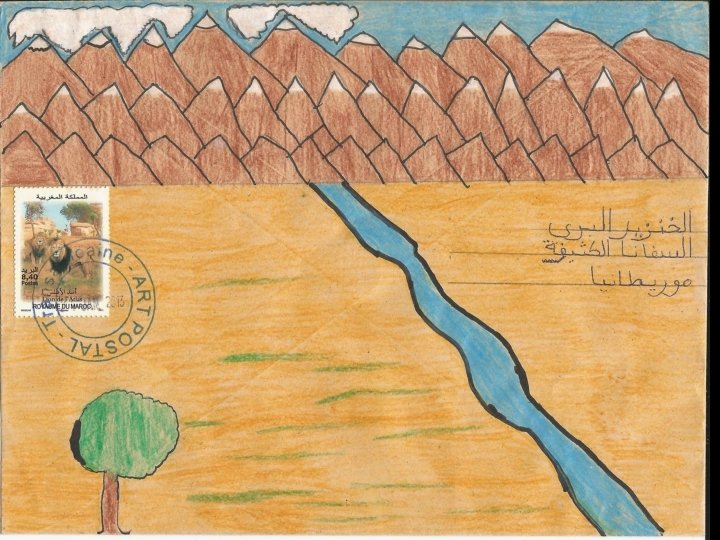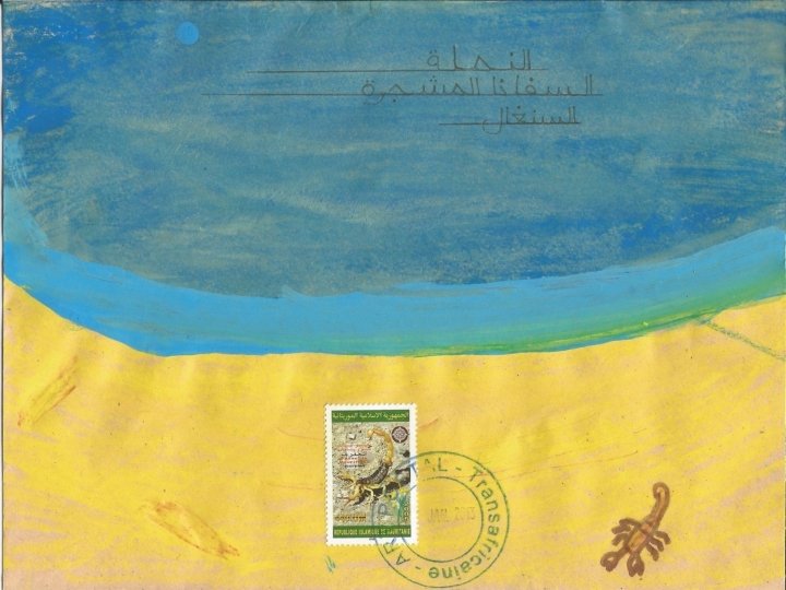 Ces productions ont été réalisées à partir d’une idée originale de Stéphanie Schneider publiée dans Ateliers d’expressions (édition Accès). Remerciements à Marie-Jeanne Hautbois, Jocelyn Djigui, Nadine Chantry et Laurent Neuhard pour l’acquisition et l’envoi des timbres mauritaniens, sénégalais, burundais et malgaches. Atelier d’écriture réalisé conjointement en français et en arabe en janvier 2013. Habiba Alarfaoui & Stéphane Bouron