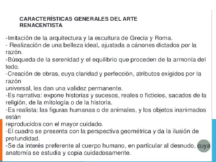 ARTE DEL RENACIMIENTO El renacimiento es el movimiento cultural y artístico iniciado en Italia en el siglo xv que dirige sus ojos al clasicismo romano y al hombre como centro de las cosas, superada la tradición teocéntrica medieval, no es de extrañar que sea en Italia donde se produce tal proceso pues el impresionante legado del viejo imperio romano estuvo presente incluso en plena época medieval y el mundo italiano nunca se llegó a desapegar del todo, como demuestra, incluso, su arte románico peculiar. En lo concerniente a la pintura renacentista del siglo xvi hay que tratar a juan de juanes, Alonso y pedro berruguete, Sánchez Coello, juan Pantoja de la cruz, Luis de morales "el divino" pero muy especialmente el sublime y espiritual genio del manierismo "el greco".