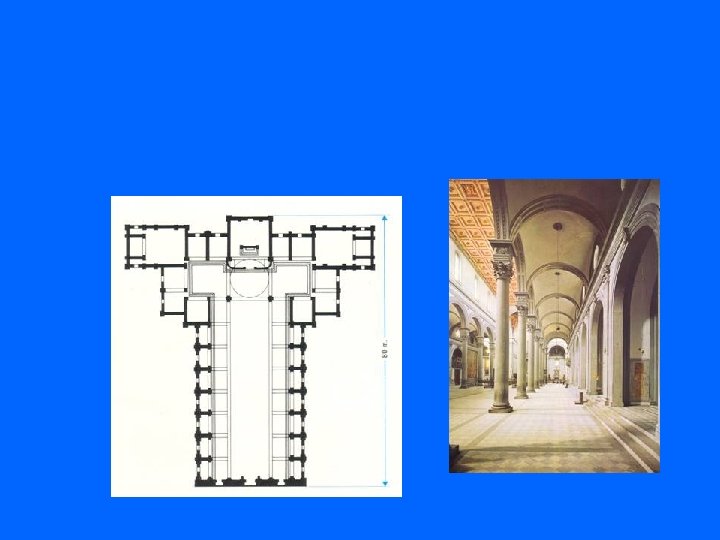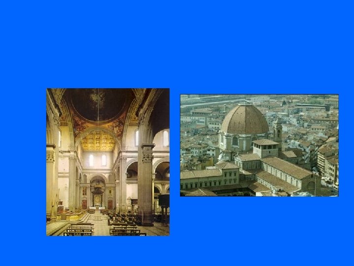 Filippo Brunelleschi. 1377 - 1446 n n n Formado en el ambiente científico y filosófico de Florencia Utilizó los principios del humanismo No escribió obras teóricas Define con precisión a través de sus obras el sistema y las leyes de la perspectiva (uso de espacios perspectivos) Utiliza elementos característicos del lenguaje clásico: arcos de medio punto y capiteles de orden corintio, trozos de entablamento, etc. ) n n n n Los interiores de sus iglesias se inspiran en las basílicas paleocristianas Usa la planta de cruz latina (San Lorenzo y Santo Spíritu) Usa la planta centralizada (Capilla Pazzi en Santa Croce) Uso de la cúpula (tambor, cúpula y linterna al exterior) Uso de casetones (techos planos y trozos o secciones de bóvedas) Interiores diáfanos con paredes blancas y elemnetos en pietra serena Racionalidad y armonía
