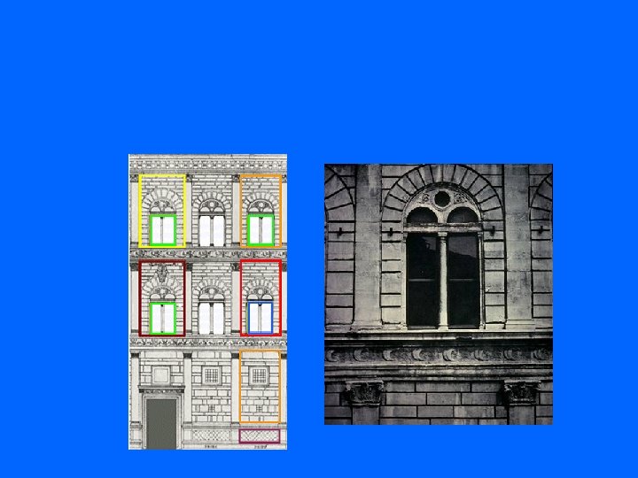 Características arquitectura El edificio renacentista será el resultado de un cálculo que se traduce en proporción, orden, simetría, armonía y diafanidad. • Las partes del edificio deben guardar proporción y armonía: planta, alzado, capiteles, columnas, cornisas. . . • El edificio ideal debe guardar simetría en todos sus ejes • Estructura y plantas: efectos matemáticos, proporción • empleo de planta centralizada (visión unitaria) • planta longitudinal