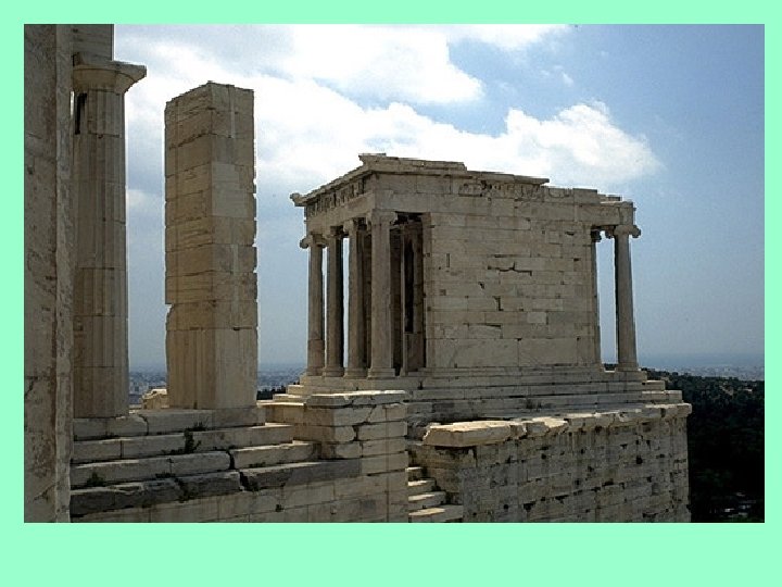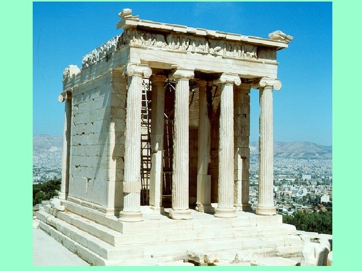 "¿Qué es lo que impresiona cuando al mirar una cosa sientes interés, atracción, desbordante placer? . La opinión general, atreveríame a decir, es que la relación de las partes entre sí y de aquellas con el conjunto constituye la belleza sensible; es decir, que la belleza de las cosas que vemos, como la belleza de todo lo demás, se compone de simetría y proporción. Según este criterio, nada simple y desprovisto de partes puede ser bello. " (Plotino, s. III a. C. ) TEMPLO DE ATENEA NIKÉ SÍNTESIS DE LA CONCEPCIÓN DEL ARTE GRIEGO