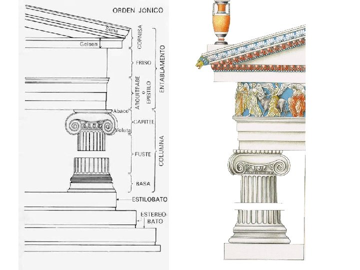 Orden jónico • Se origina también durante el S. VII en Asia Menor y en las islas del Egeo.