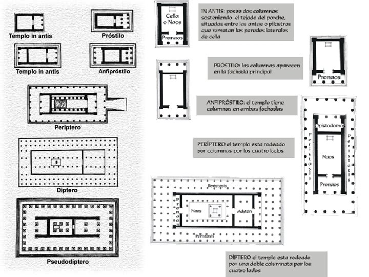 PERÍPTERO: El templo está rodeado de columnas por los cuatro lados DÍPTERO: El templo está rodeado por una doble columnata por los cuatro lados