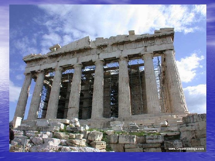 Contexto histórico • Gobierno de Pericles en Atenas • Período de esplendor: (461 -429 a. C. ). – Político tras la derrota de los persas (Guerras Médicas), – Económico (desde Atenas se administrará el tesoro de la Liga de Delos) – Artístico que culmina con la reconstrucción del conjunto de la Acrópolis previamente arrasada por los persas.