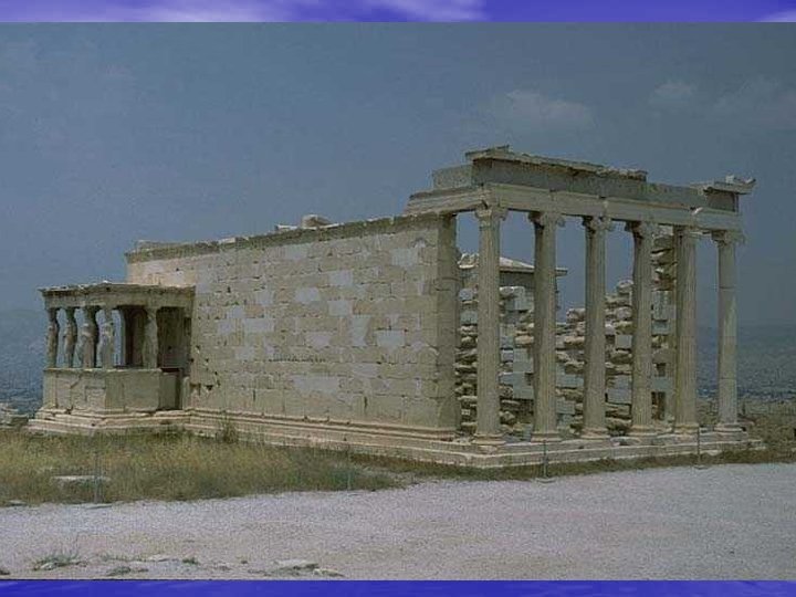 Más ligero, esbelto, elegante y decorativo que el dórico. Metafóricamente recuerda la ornamentación, la belleza y proporciones del cuerpo femenino. Erecteion (Acrópolis de Atenas)