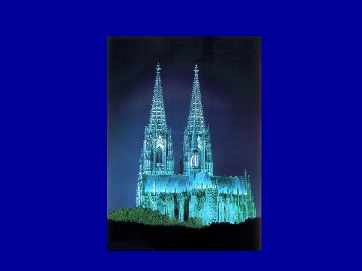 • • A igreja gótica tem três portais que dão acesso à três naves do interior da igreja: a nave central e as duas naves laterais. A arquitetura expressa a grandiosidade, a crença na existência de um Deus que vive num plano superior; tudo se volta para o alto, projetando-se na direção do céu, como se vê nas pontas agulhadas torres de algumas igrejas góticas. A rosácea é um elemento arquitetônico muito característico do estilo gótico e está presente em quase todas as igrejas construídas entre os séculos XII e XIV. • Outros elementos característicos da arquitetura gótica são os arcos góticos ou ogivais e os vitrais coloridíssimos que filtram a luminosidade para o interior da igreja. • As catedrais góticas mais conhecidas são: Catedral de Notre Dame de Paris e a Catedral de Notre Dame de Chartres. •