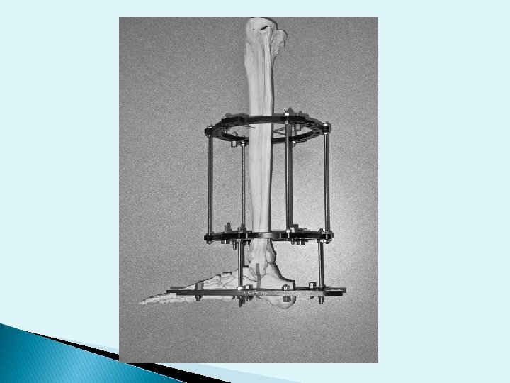 Treatment Method: q q q External fixation is applied to the tibia/fibula and foot. The ankle is distracted approx. 5 mm. Distraction is maintained for 3 months. (studies range from 4 weeks to 4 months) Weight bearing as tolerated is allowed. A hinge at the ankle joint is often incorporated in the frame work.