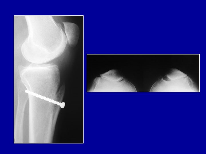 Arthrose fémoro-patellaire développée sur une ancienne luxation de la rotule (noter l’ossification volumineuse sur l’aileron interne) Traitement par transposition de la tubérosité tibiale et régularisation de la rotule