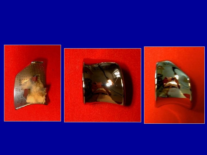 Possibilité d’utiliser des boutons en polyéthylène implantés sur du métal Le métal permet une implantation sans ciment (avec une bonne repousse osseuse visible sur cet explant) L’usure du polyéthylène serait plus rapide