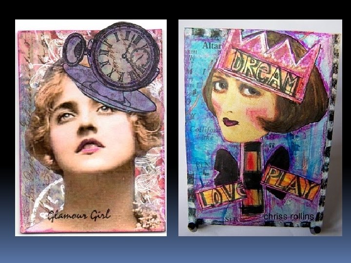 Techniques for Altered Art Collage Designer Papers Die Cutting Embellishments Fabrics and Other Materials Acetate Canvas Chipboard Fabrics and Lace Fibers Friendly Plastic®Metal Foil Flakes Paper Clay Polymer Clay Shrink Plastic Ultra-thick Embossing Enamel (UTEE)