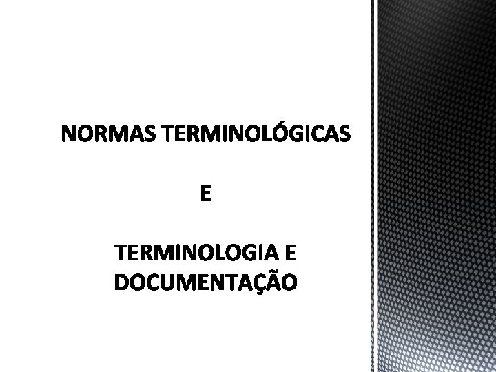 § Busca pela eficácia – normalização. § As obras produzidas registram terminologias recomendadas e que devem, de preferência, ser utilizadas em comunicações técnicas e científicas. § 1926 – ISA (International Federation of National Standardizing Association) – facilitar comércio internacional. § 1946 – ISO (Organização Internacional de normalização). § Comitê Técnico 37 – Terminologia.