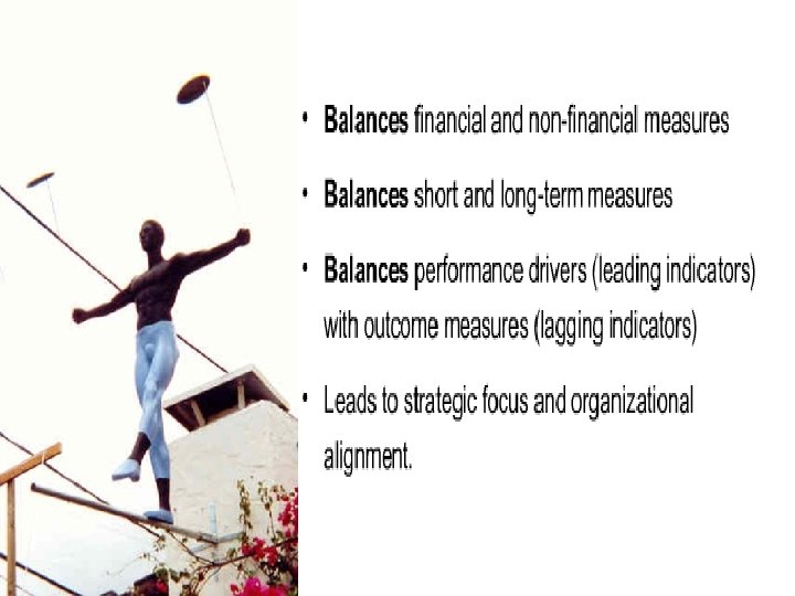 It is important to focus on the means used to achieve the ends … …. . not just on the ends themselves… To only focus on traditional financial accounting measures (such as ROI, ROE, EPS…) …. . does not give mgt the whole picture….