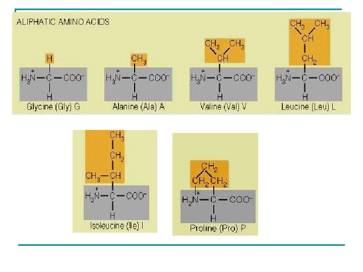 Asam amino non polar n n n Memiliki gugus R alifatik Glisin, alanin, valin, leusin, isoleusin dan prolin Bersifat hidrofobik. Semakin hidrofobik suatu a. a spt Ile (I) biasa terdapat di bagian dlm protein. Prolin berbeda dgn a. a siklis. Tapi mempunyai byk kesamaan sifat dgn kelompok alifatis ini. Umum terdapat pada protein yang berinteraksi dengan lipid