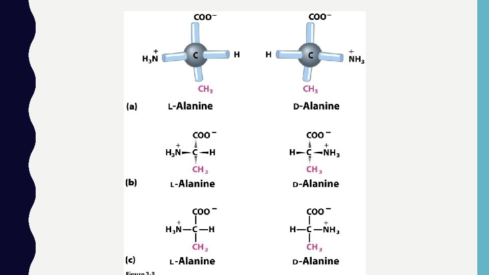 SIFAT-SIFAT ASAM AMINO : 1. Bersifat Amfoter 2. Dapat membentuk Zwitter ion 3. Bersifat optis aktif (memiliki atom C kiral), kecuali Glisin 4. Dapat berpolimerisasi membentuk protein