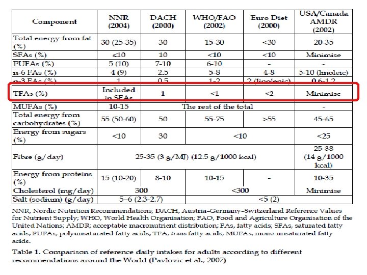 Sumber Pustaka Pavlovic, M. , Prentice, A. , Thorsdottir, I. , Wolfram, G. , & Branca, F. (2007). Challenges inharmonizing energy and nutrient recommendations in Europe. Annals of Nutrition and Metabolism, Vol. 51, No. 2, (June 2007), pp. 108 -114, ISSN 0250 -6807 FDA (2003). Federal Register, Food Labelling Trans Fatty Acids in Nutrition Labelling; Consumer research to consider nutrient content and health claims and possible footnote or disclosure statements, final rule and proposed rule, Food and Drug Administration, Vol. 58, (July 2003), pp. 41433 -41506. Filip, S and Rajko V. (2012). Trans Fatty Acids and Human Health, (April 2012) pp. 43 -64 Masanori Semma (2001). Trans Fatty Acids: Properties, Benefits and Risks, Journal of Health Science, Vol. 48, (October 2001), pp. 7 -13