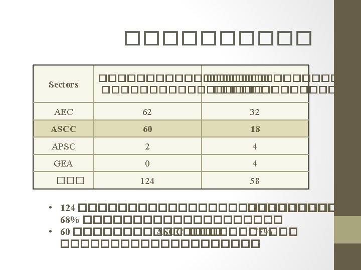 ASCC SECTORAL BODIES (Senior Officials- Level ) • 17. ASEAN Committee on the Implementation of the ASEAN Declaration on the Promotion & Protection of the Rights of Migrant Workers (ACMW) • 18. ASEAN Commission on the Promotion & Protection of the Rights of Women & Children (ACWC) • 19. ASEAN Centre for Biodiversity (ACB) • 20. ASEAN Coordinating Centre for Humanitarian Assistance on Disaster Management (AHA Centre) • 21. ASEAN Earthquake Information Centre • 22. ASEAN Specialised Meteorological Centre (ASMC) • 23. ASEAN University Network (AUN)
