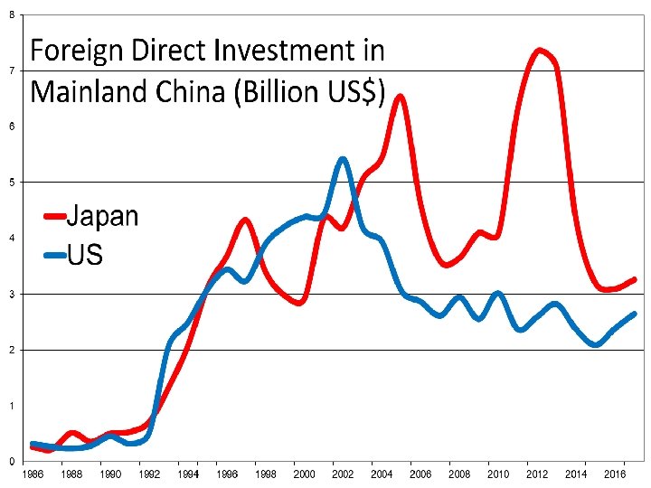 Japan’s Direct Investment • Largest investment source outside of greater China before 2013 • Over 30, 000 Japan-invested enterprises • Directly or indirectly employ over 10 million people