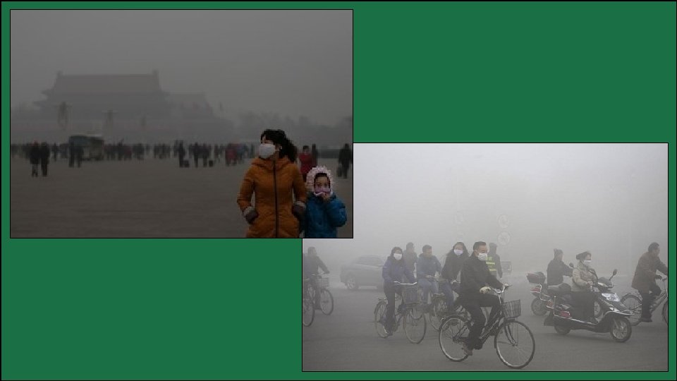 Solution? • China’s government created the Beijing Municipal Environmental Protection Bureau to work on the quality of the city’s air before the 2008 Olympics. • Automobile traffic was greatly reduced and many factories were temporarily closed. • Many air pollutants were cut by as much as 45%. • Many people enjoyed the cleaner air and petitioned the government to find long-term ways to clean it up.