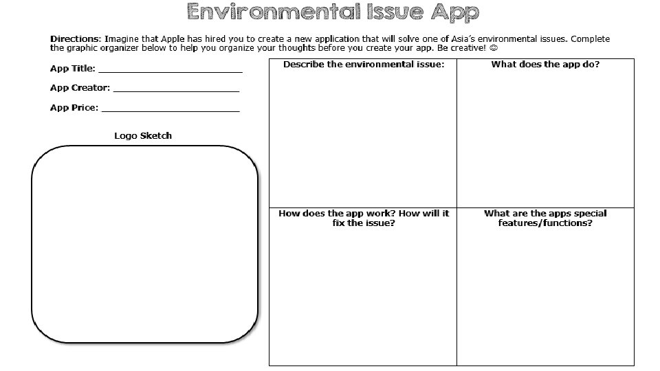 Teachers Print off the following pages for each student. The students should complete the chart while discussing the presentation.