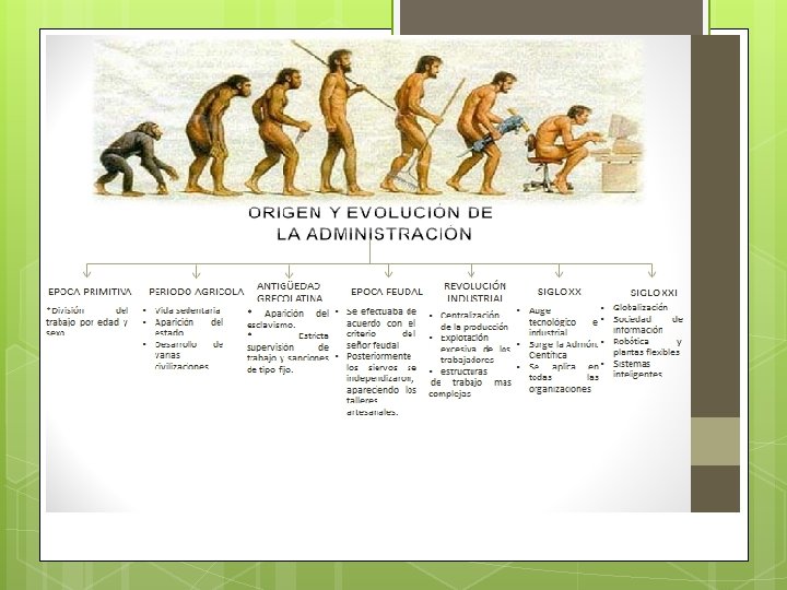 Antigüedad grecolatina En esta época apareció el esclavismo; la administración se caracterizó por su orientación hacia una estricta supervisión del trabajo y el castigo corporal como forma disciplinaria. El esclavo carecía de derechos y se le ocupaba en cualquier labor de producción.