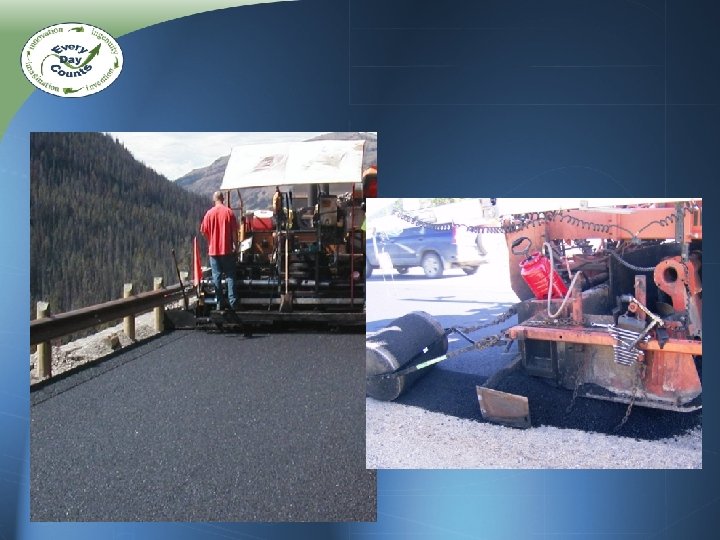 Selecting a Demonstration Project For Your First Project For an Open House • Existing edge drop-offs OR minimum 2” overlay • Progressive district/county • Cooperative contractor • Near central office • Recoverable area beyond pavement edge • Rural, higher-speed road • Narrow or no shoulders Important: • Longer project (mileage) • Located near a conference room Optional: • Warm-mix asphalt or other innovation • Easy travel location